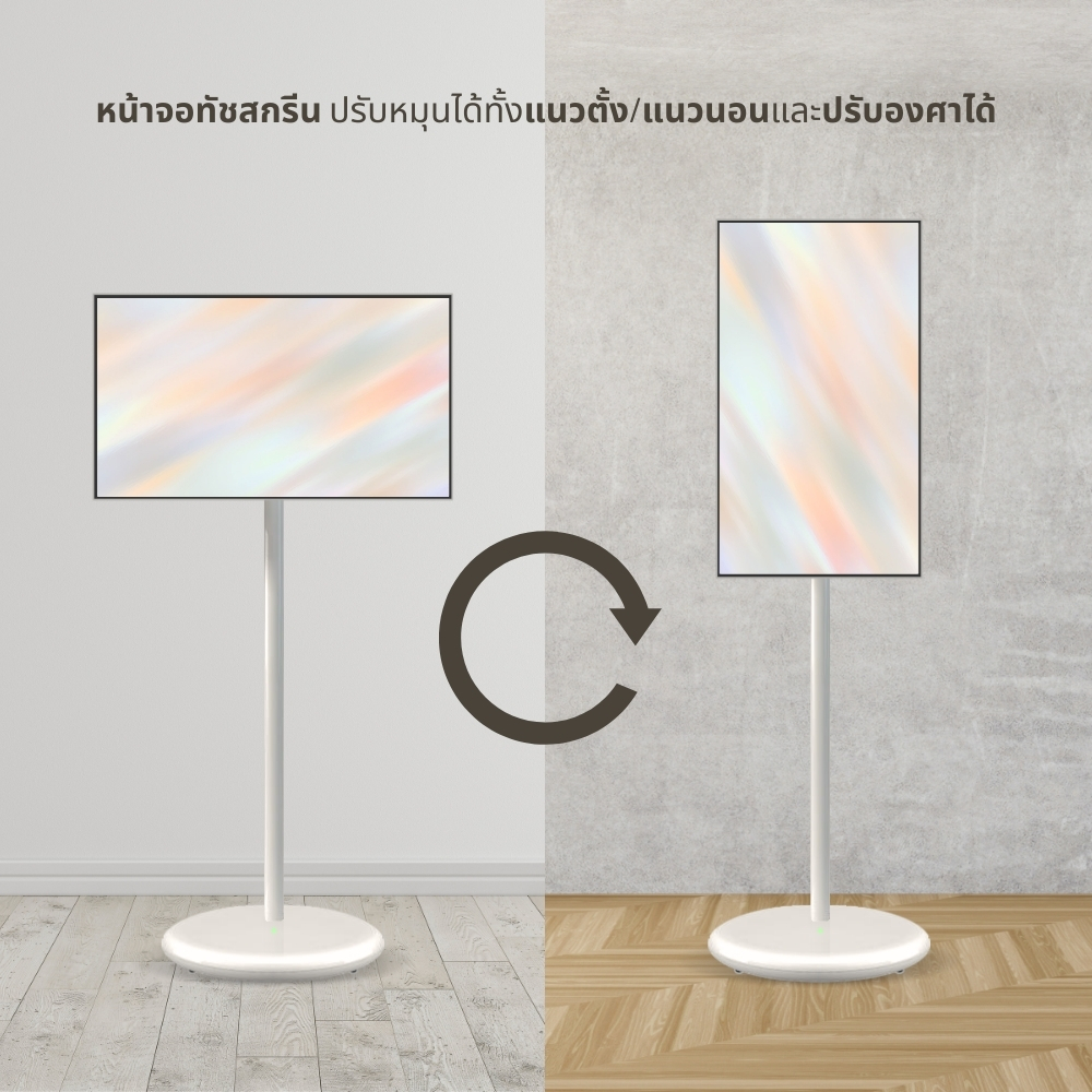 ดีไซน์เพื่อการใช้งาน : ฐานล้อเลื่อนเคลื่อนย้ายง่าย หมุนจอได้ 360 องศา (แนวตั้ง/แนวนอน) ปรับก้มเงยได้