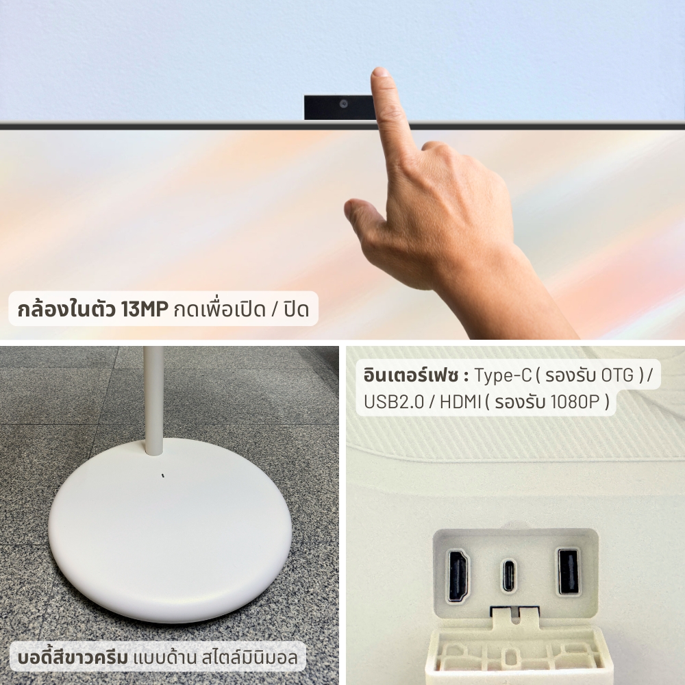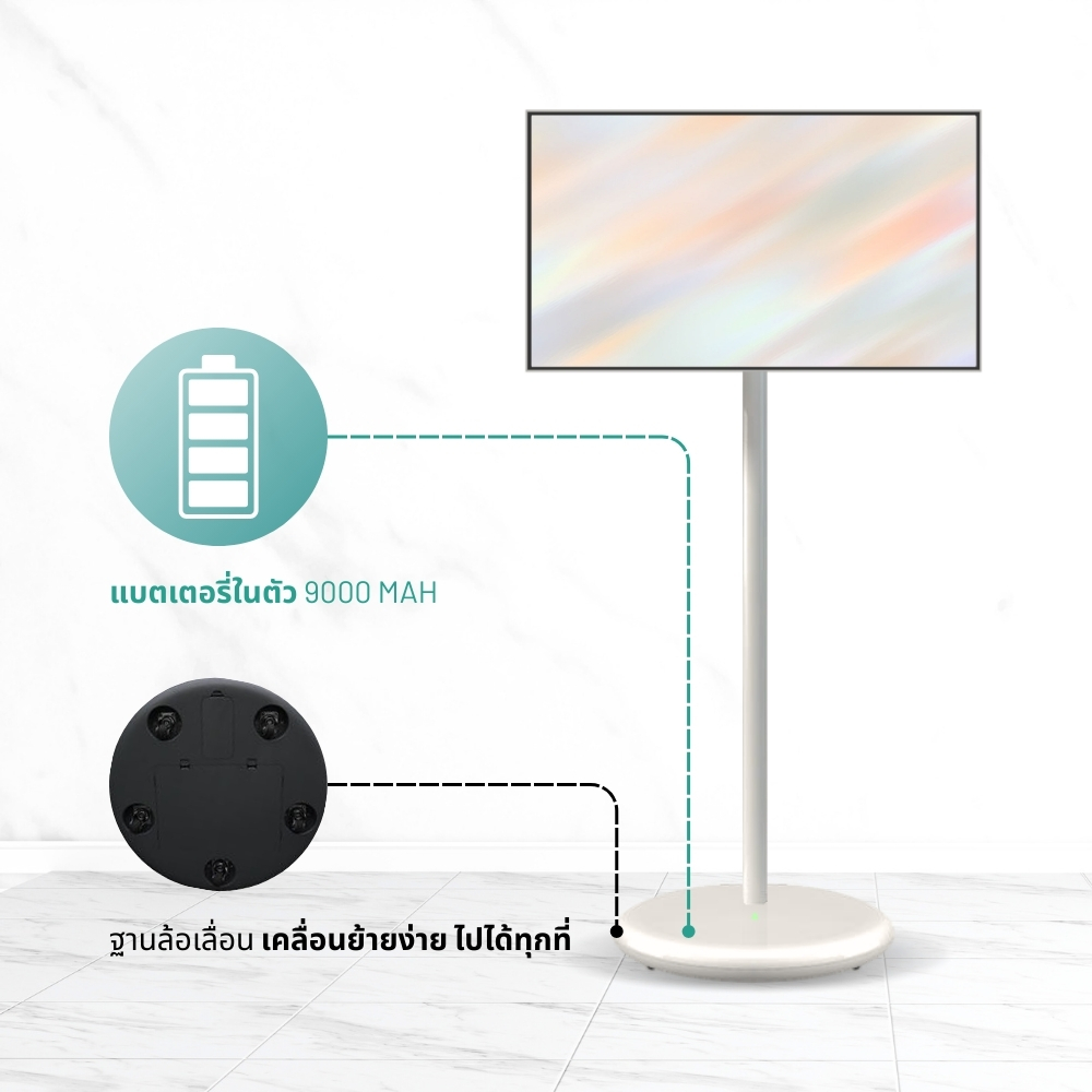 หน้าจอตั้งพื้นอัจฉริยะ ขนาด 27" สีขาวครีม สไตล์มินิมอล ระบบ Android 15 ล่าสุด! หมุนได้ สัมผัสได้ พร้อมแบตในตัว ยกระดับความบันเทิงและการทำงานด้วย Movable Android Smart Monitor ไม่ใช่แค่จอธรรมดา แต่คือแท็บเล็ตขนาดยักษ์ที่เดินตามคุณไปได้ทุกที่!