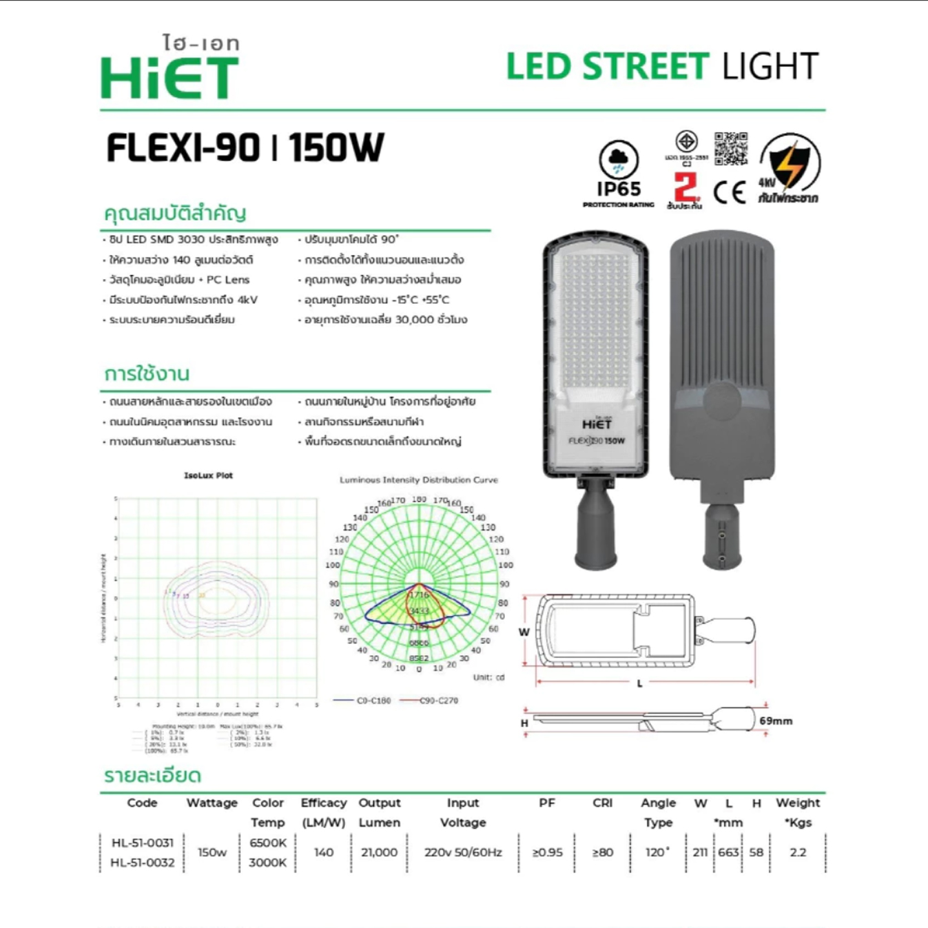 - มาตรฐาน IP65 กันน้ำ กันฝุ่น
