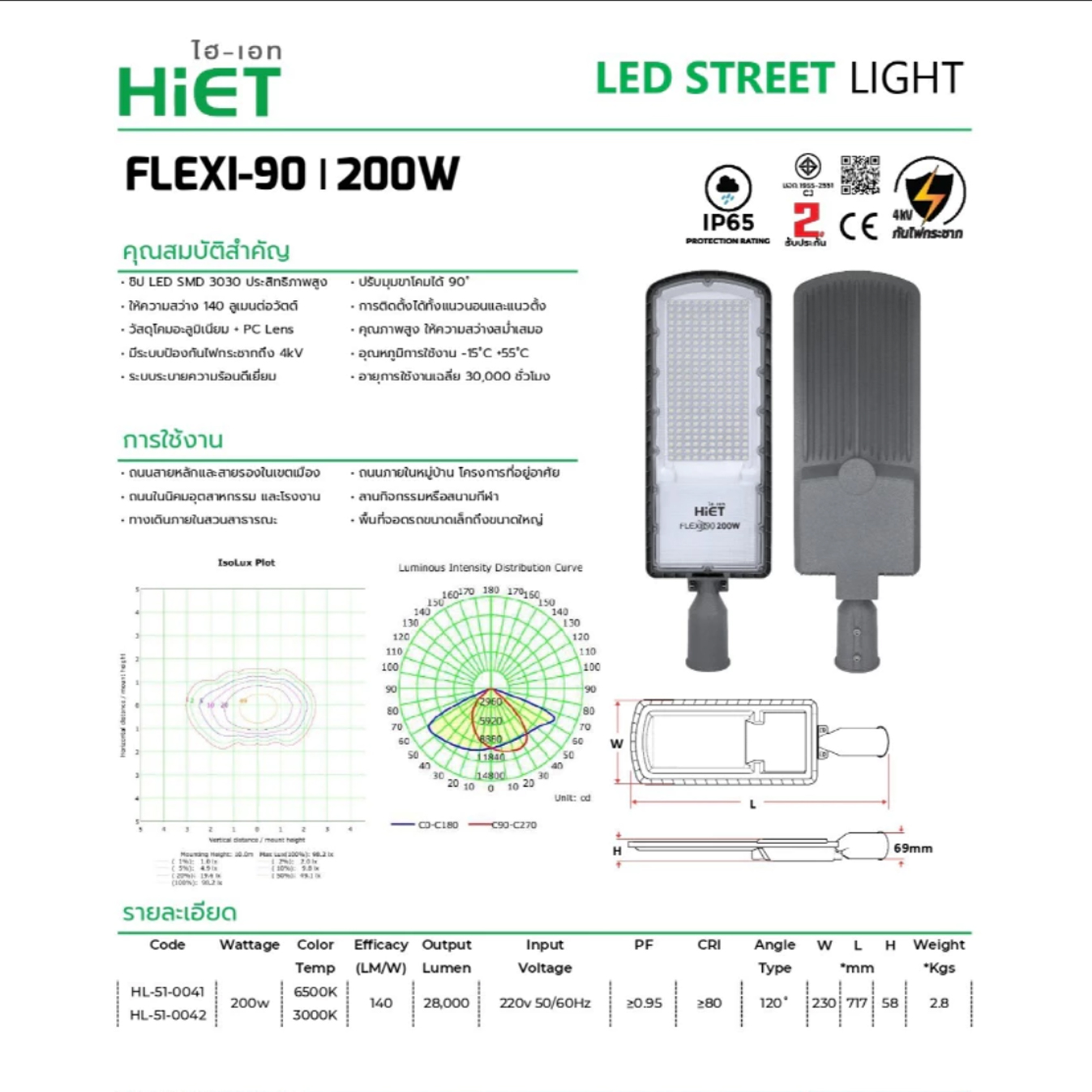 - ประหยัดพลังงานด้วย Power Factor ≥0.95 และ CRI ≥80