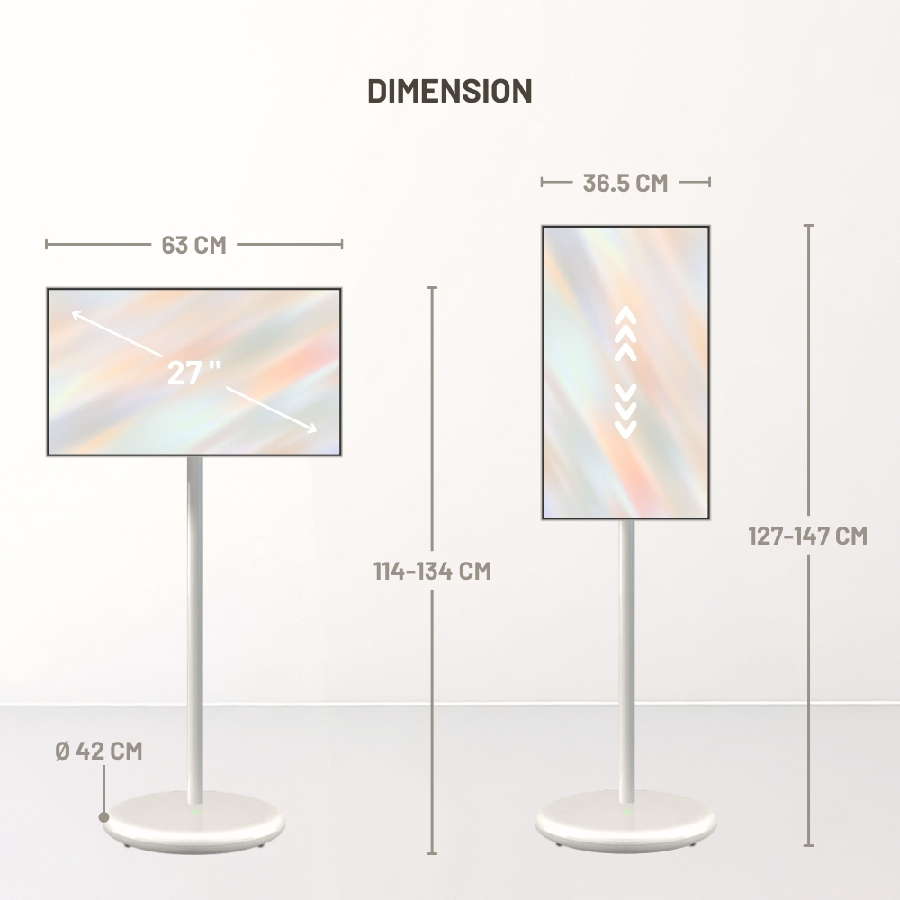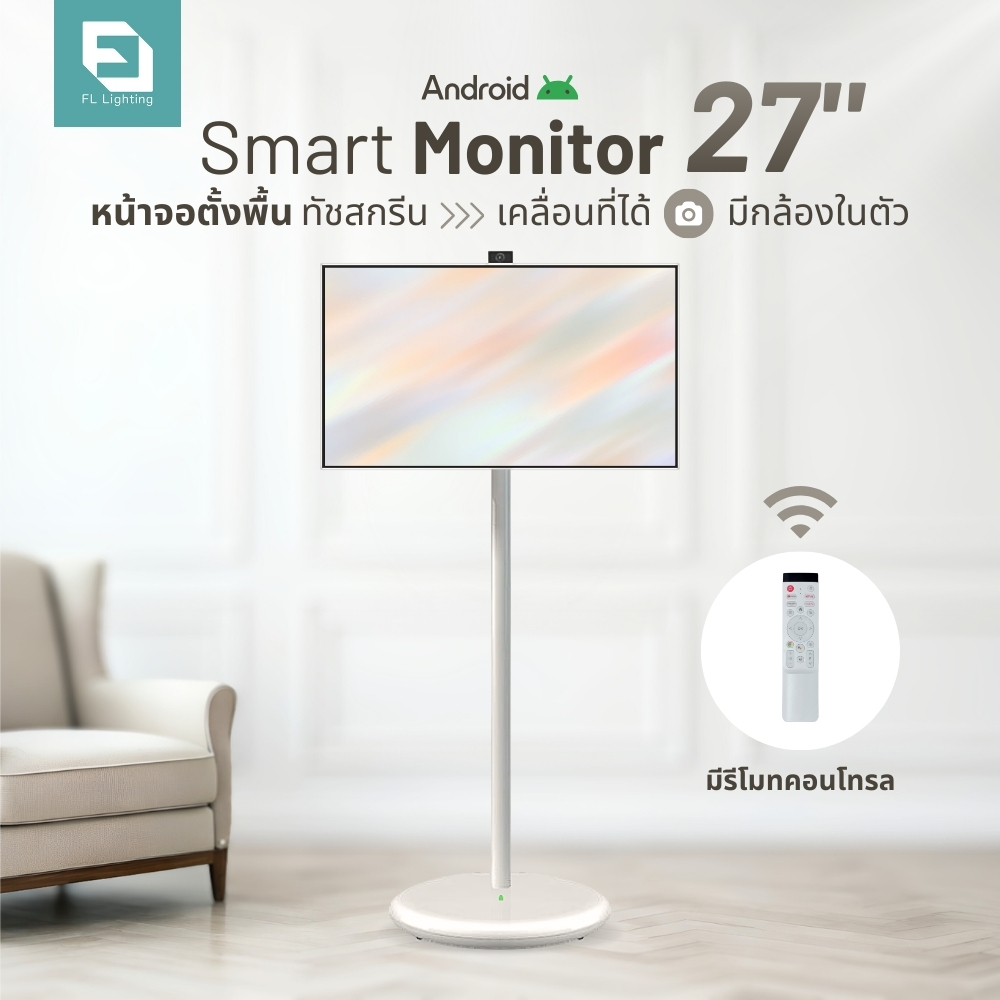 หน้าจอตั้งพื้นอัจฉริยะ ขนาด 27" สีขาวครีม สไตล์มินิมอล ระบบ Android 15 ล่าสุด! หมุนได้ สัมผัสได้ พร้อมแบตในตัว ยกระดับความบันเทิงและการทำงานด้วย Movable Android Smart Monitor ไม่ใช่แค่จอธรรมดา แต่คือแท็บเล็ตขนาดยักษ์ที่เดินตามคุณไปได้ทุกที่!