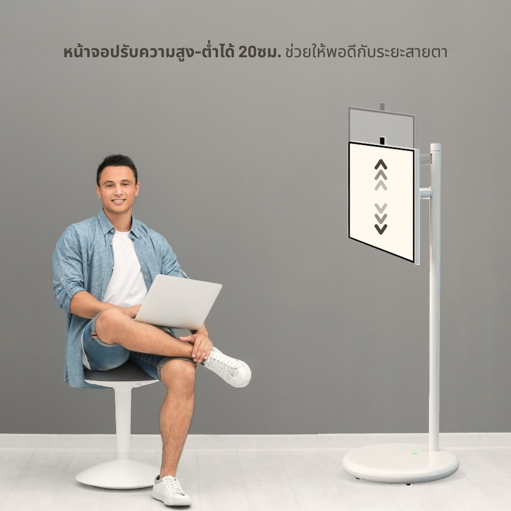 ดีไซน์เพื่อการใช้งาน : ฐานล้อเลื่อนเคลื่อนย้ายง่าย หมุนจอได้ 360 องศา (แนวตั้ง/แนวนอน) ปรับก้มเงยได้