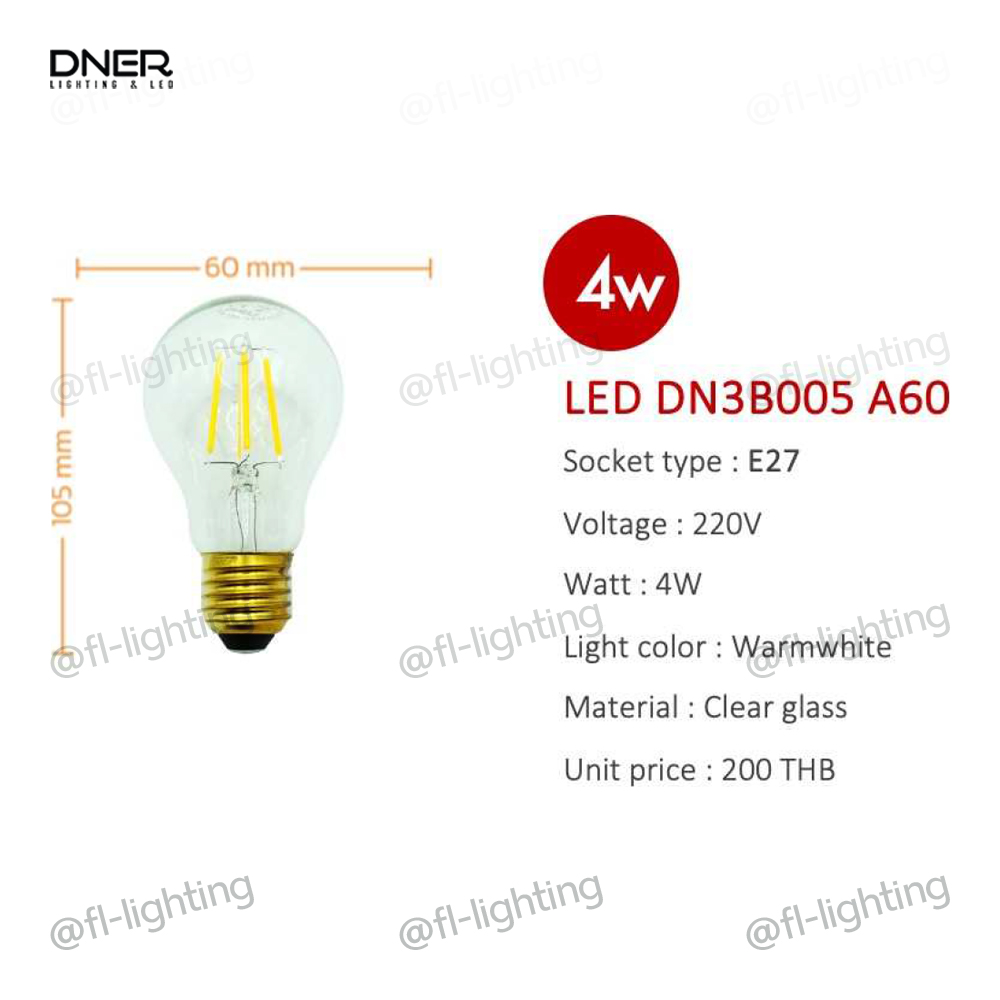 - หลอดไฟ LED Bulb A60 Filament 4W ขั้ว E27 แก้วใส