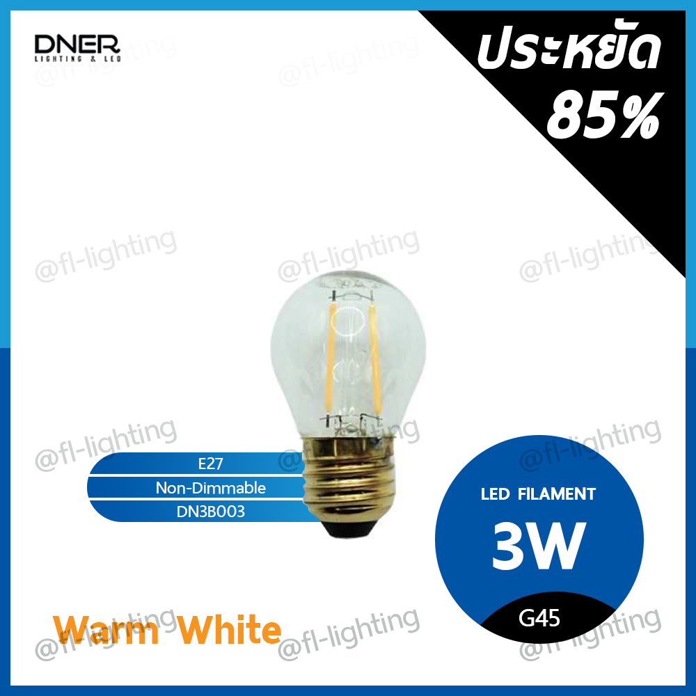 - หลอดไฟ LED Bulb G45 Filament 3W ขั้ว E27 แก้วใส