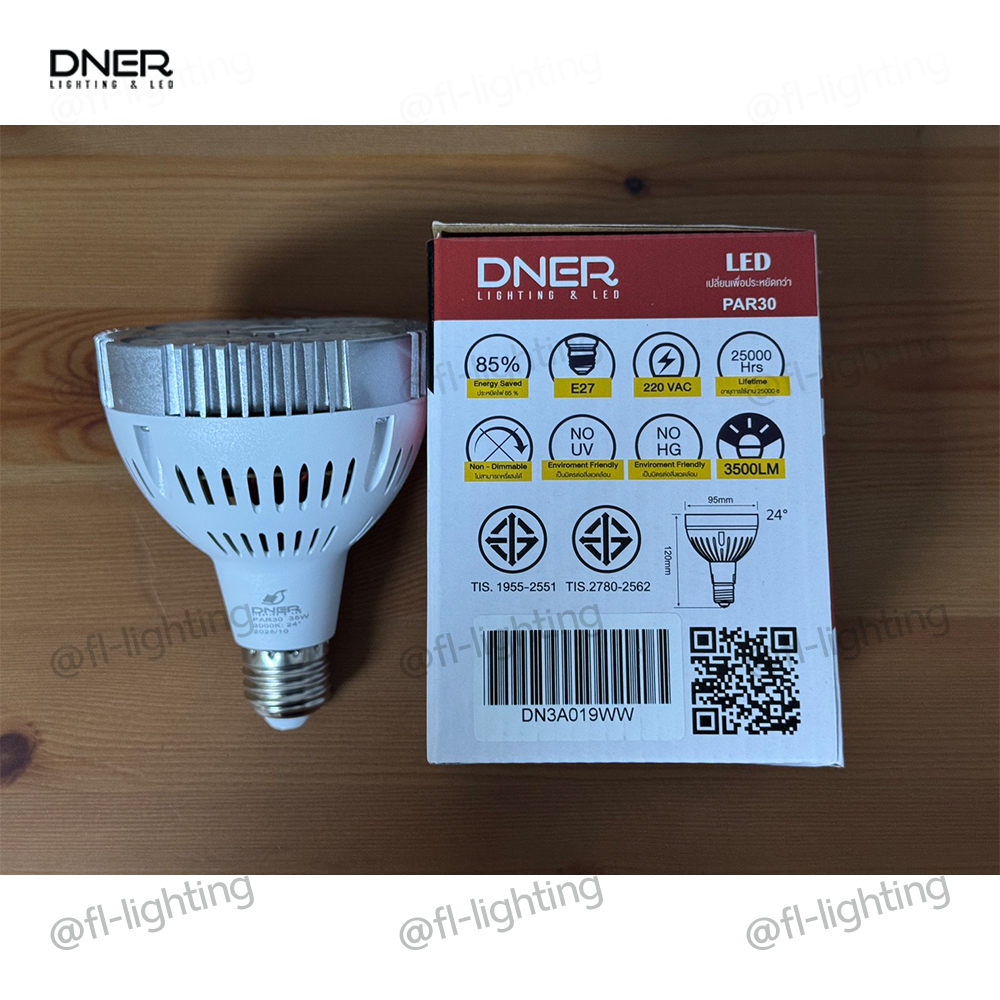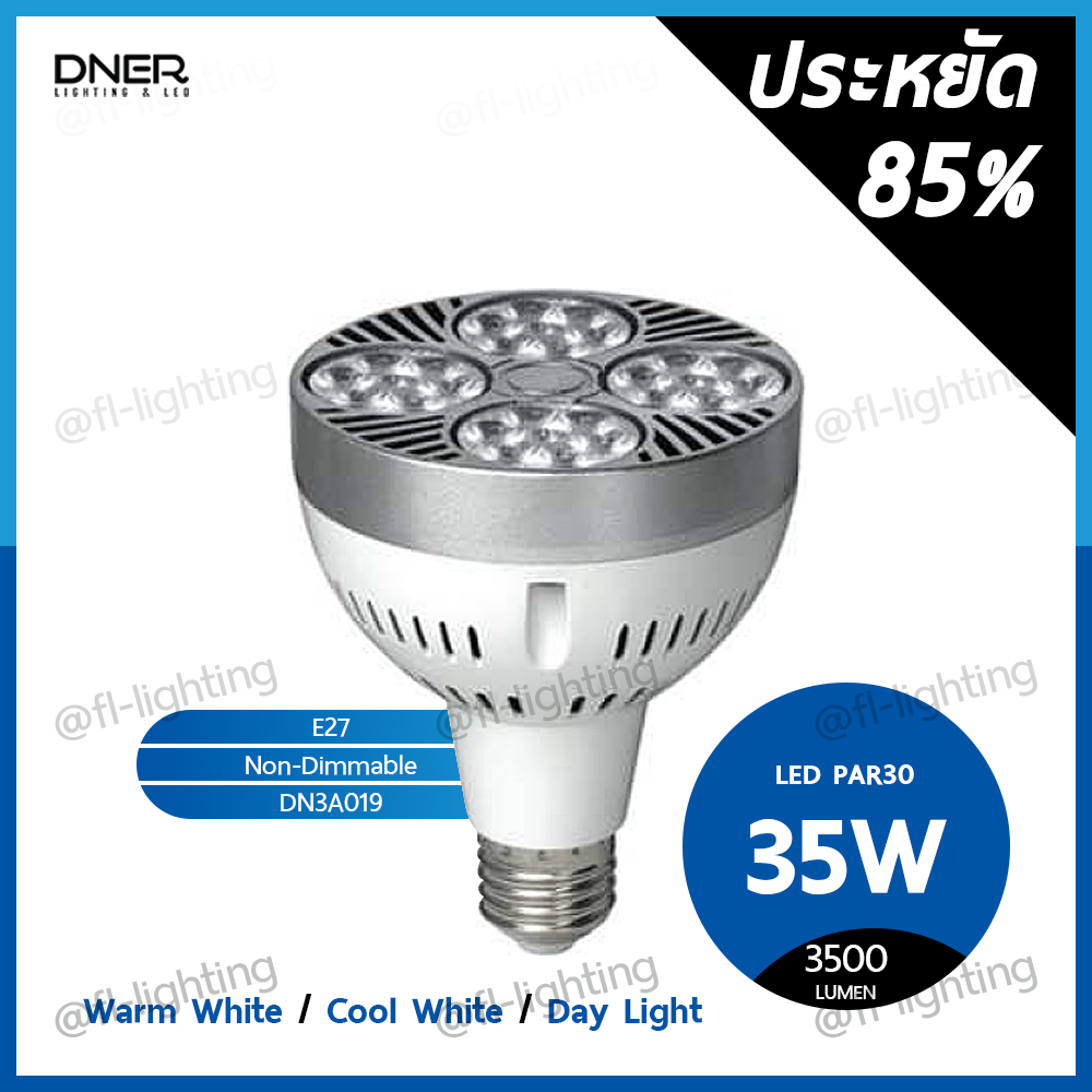 *สั่งซื้อปริมาณมากกรุณาติดต่อฝ่ายขาย LINE : @fl-lighting หลอดไฟ LED ช่วยประหยัดไฟสูงสุดถึง85%เมื่อเทียบกับหลอดไส้ทั่วไป อายุการใช้งานยาวนานเป็น 20 เท่า สามารถเปลี่ยนเองได้ง่ายๆ เปลี่ยนแทนหลอดไส้หรือหลอดตะเกียบได้ทันที ผลิตจากวัสดุคุณภาพสูง สินค้าได้มาตรฐาน มอก. ปลอดภัย ไม่มีรังสี UV เป็นมิตรต่อสิ่งแวดล้อม คุณสมบัติ - หลอดไฟ LED PAR30 35วัตต์ ขั้วE27 - กินไฟน้อย ประหยัดพลังงาน - อายุการใช้งานยาวนาน 25,000 ชม. - เป็นมิตรต่อสิ่งแวดล้อม ไม่ก่อให้เกิดมลภาวะ - ได้มาตรฐานมอก. ปลอดภัย ไม่มีรังสี UV - แสงวอร์มไวท์ 3000K ( แสงเหลือง ) ความสว่าง 3500 ลูเมน - แสงคูลไวท์ 4000K ( แสงขาวอมเหลือง ) ความสว่าง 3500 ลูเมน - แสงเดย์ไลท์ 6500K ( แสงขาว ) ความสว่าง 3500 ลูเมน #Dner #หลอดไฟLED #หลอดไฟแอลอีดี #หลอดไฟโคมไฟ #หลอดไฟดาวน์ไลท์ #หลอดไฟขั้วE27 #LED #WarmWhite #Par30