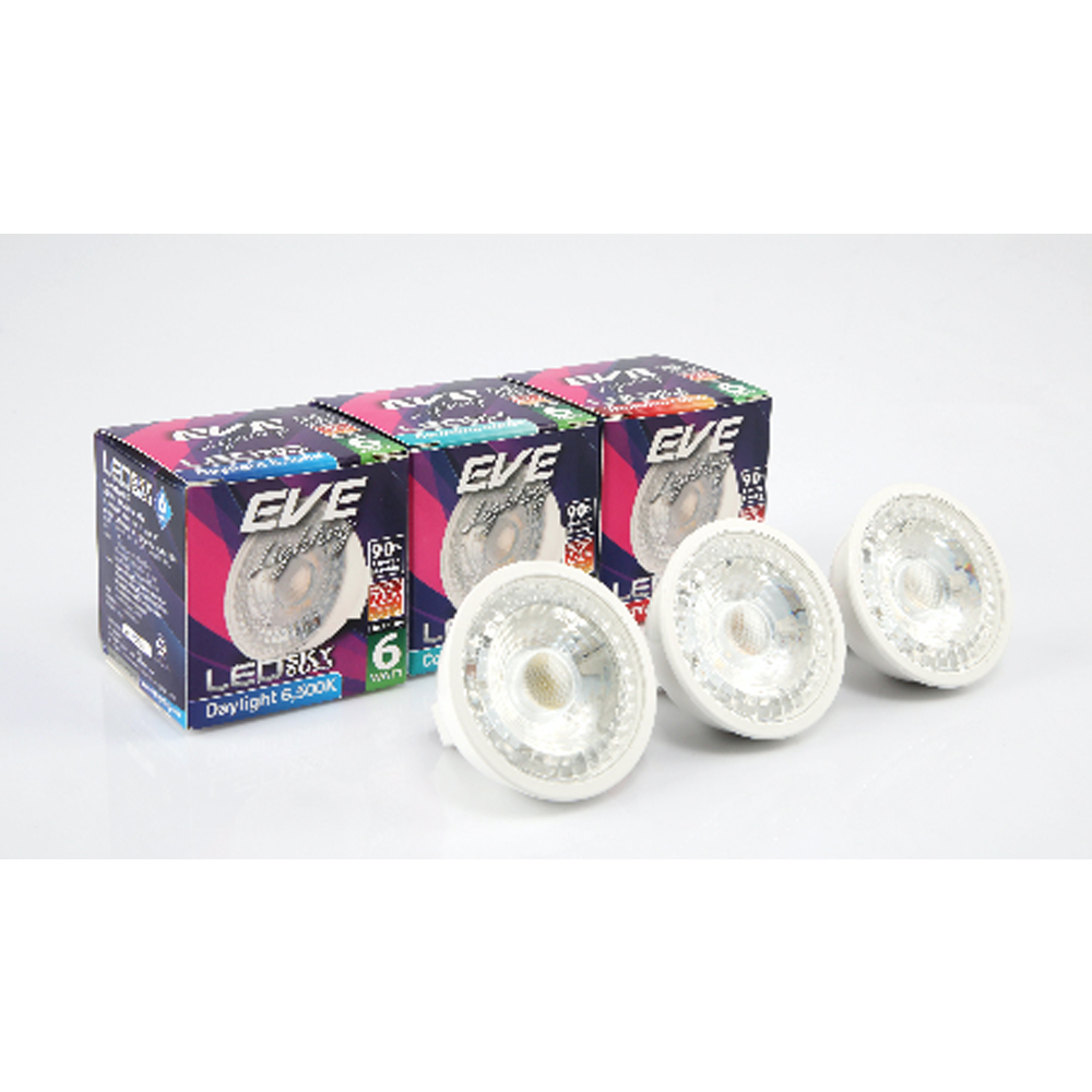 หลอดแอลอีดี MR16 Sky ขนาด 6 วัตต์ สำหรับใช้ร่วมกับไฟบ้าน 220 โวลต์ เหมาะสำหรับใช้ส่องทั่วไป เช่น ออฟฟิศ สำนักงาน ห้างสรรพสินค้า คอนโด อพาร์ทเม้นท์ หลอดไฟให้ค่ามุมกระจายแสง (Beam Angle) 36 ํ ให้ลำแสงเย็น ไม่ทำให้สีซีดจาง ไม่ทำลายจุดที่แสงส่อง