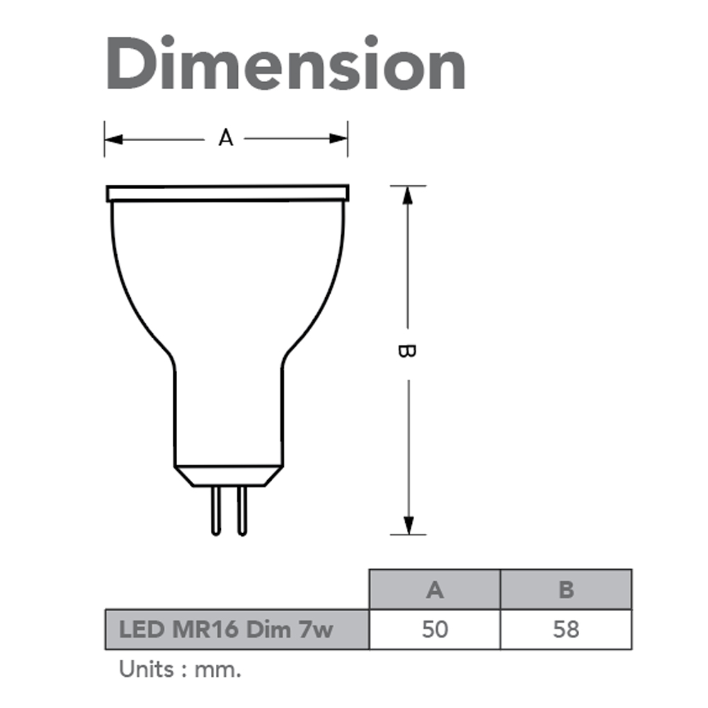 - หลอดแอลอีดี MR16 7 วัตต์ สำหรับใช้ร่วมกับ ไฟบ้าน 220 โวลต์