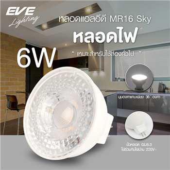 EVE หลอดไฟ LED MR16 6W 220V มุมแสงแคบ 36 องศา ขั้วGU5.3