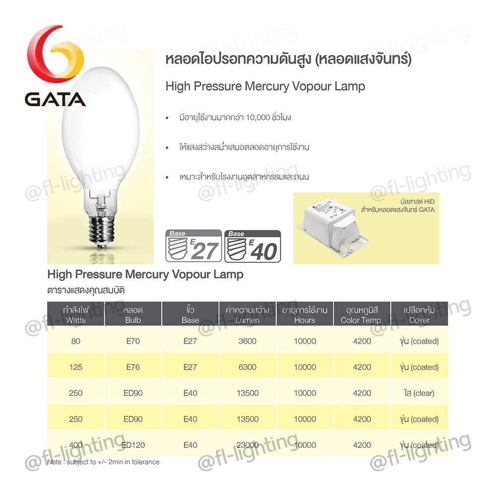 *สั่งซื้อปริมาณมากกรุณาติดต่อฝ่ายขาย LINE : @fl-lighting หลอดแสงจันทร์ ชนิดผ่านบัลลาสต์ ทรงโบว์ลิ่ง เคลือบสารฟลูออเรสเซนต์ ให้แสงที่นุ่มนวล อายุการใช้งานนาน เหมาะสำหรับ อาคารจอดรถ, ตลาดนัด, ตลาดสด, ลานกีฬา, โรงงาน คุณสมบัติ - หลอดแสงจันทร์ ชนิดผ่านบัลลาสต์ 80วัตต์ ขั้วE27 - อายุการใช้งานนาน รูปทรงโบว์ลิ่งสีขาว จึงให้แสงที่นุ่มนวล - ความสว่าง 3600 ลูเมน - เหมาะสำหรับ อาคารจอดรถ, ตลาดนัด, ตลาดสด, ลานกีฬา, โรงงาน #Gata #หลอดแสงจันทร์ #หลอดไฟ #หลอดไฟโคมไฟถนน #หลอดไฟแสงจันทร์ #ไฟถนน #หลอดแสงจันทร์ชนิดผ่านบัลลาสต์ #หลอดทรงโบว์ลิ่ง #หลอดไฟMercury #Mercury