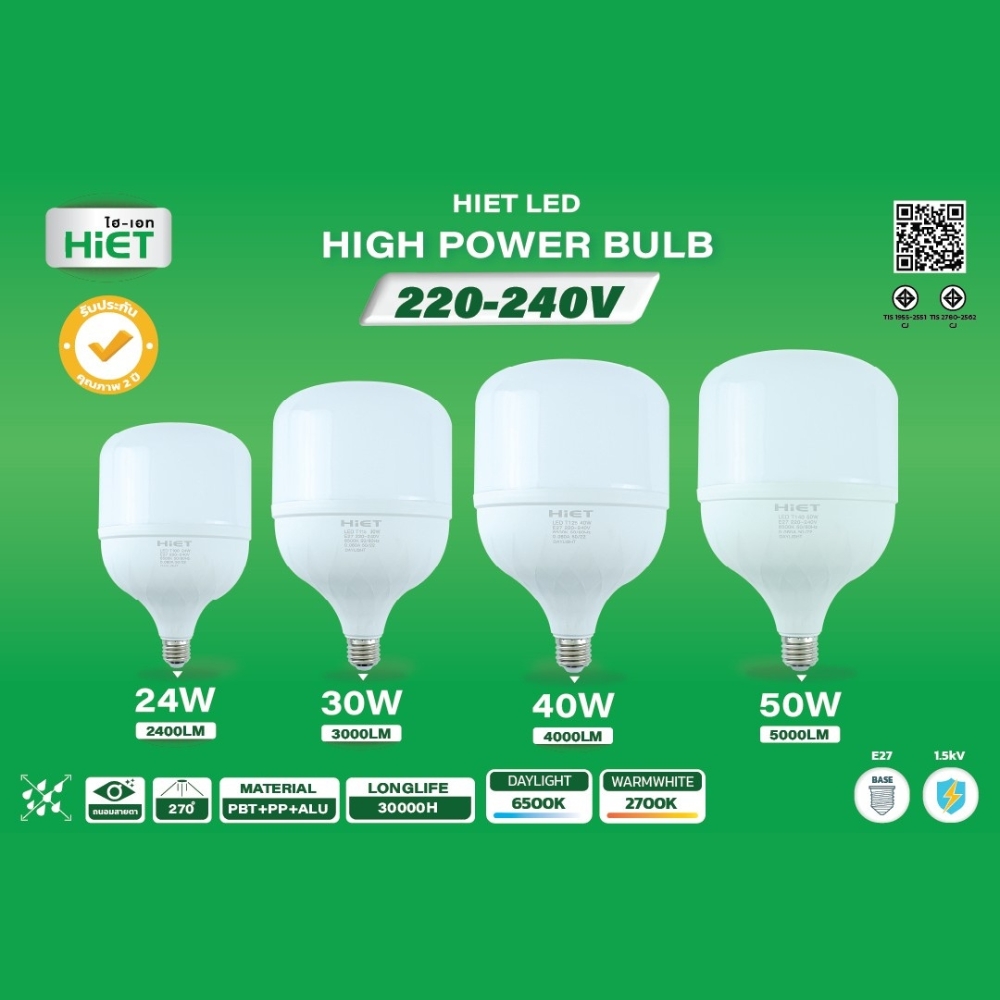 *สั่งซื้อปริมาณมากกรุณาติดต่อฝ่ายขาย LINE : @fl-lighting - 40W 4000LM - Voltage : 220-240V - Dimension : Ø 121 x 203 mm - Warmwhite 3000K - Daylight 6500K