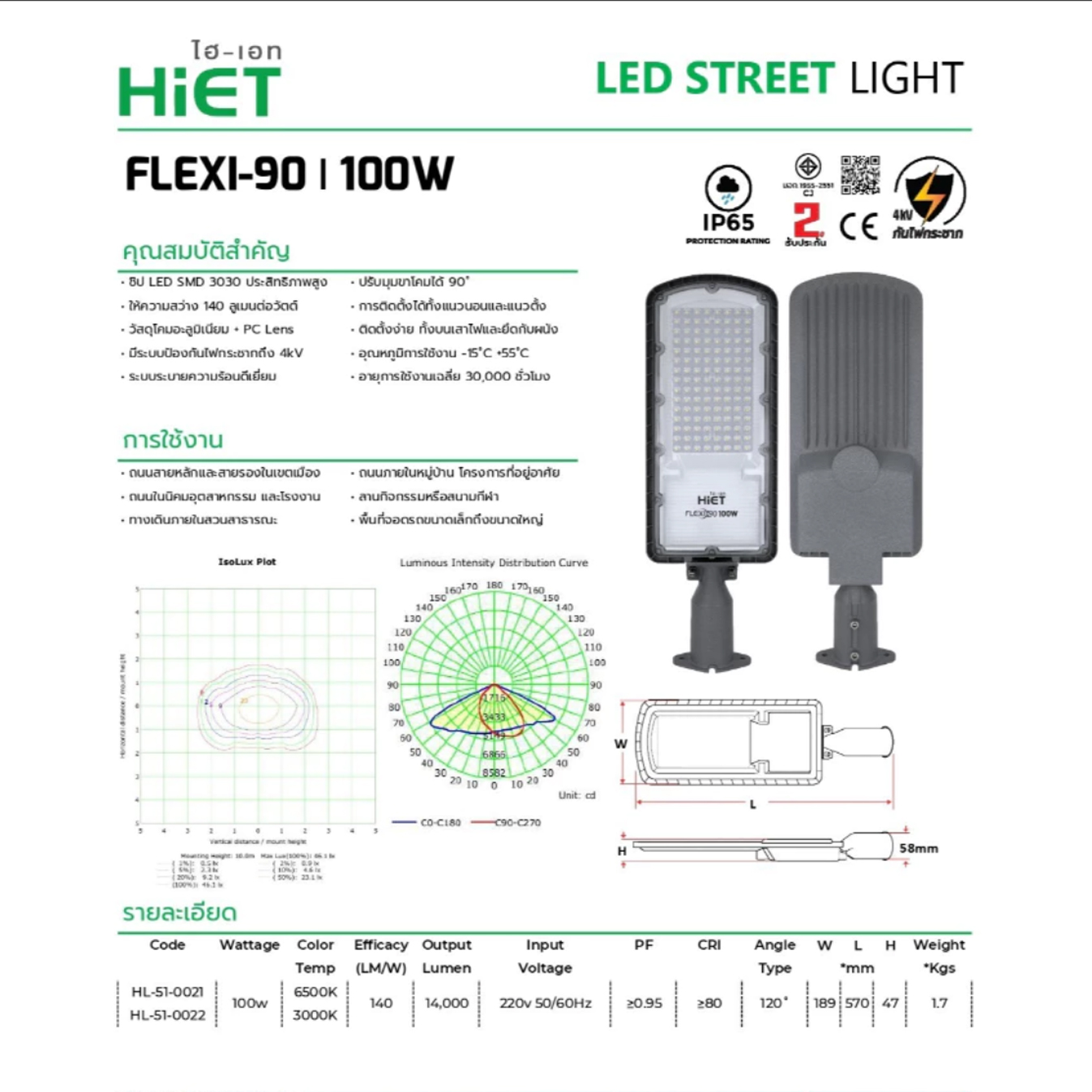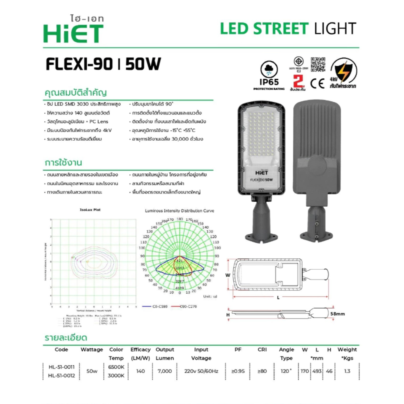 - ประหยัดพลังงานด้วย Power Factor ≥0.95 และ CRI ≥80