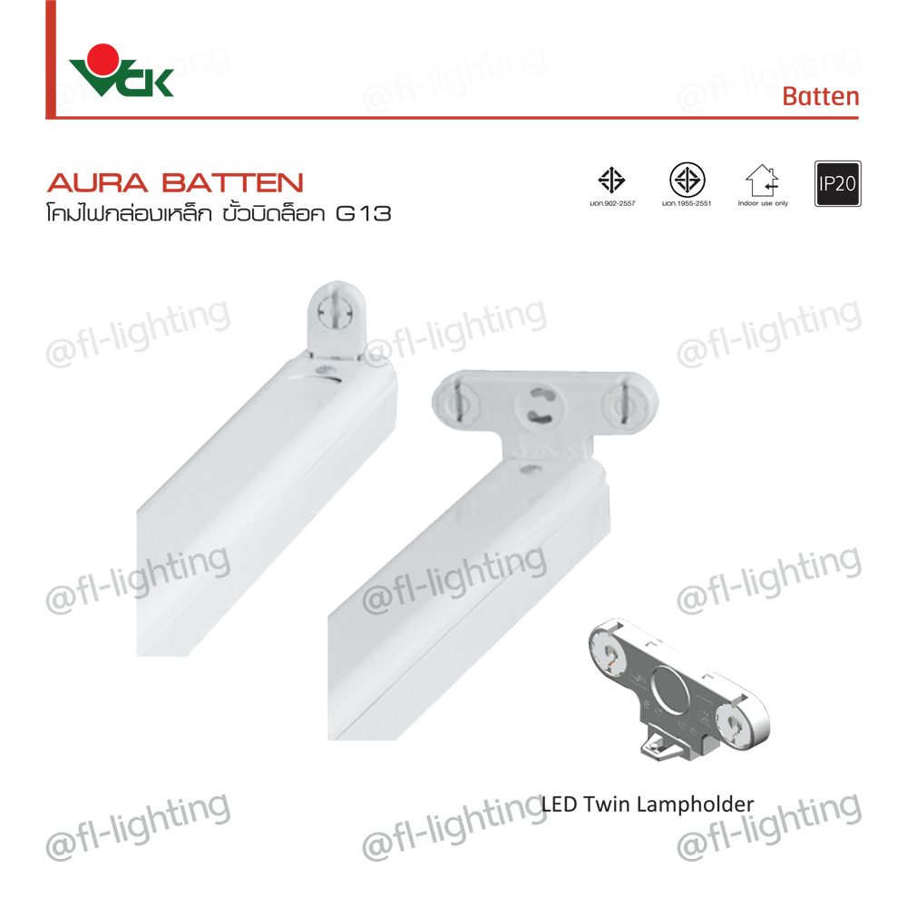 AURA BATTEN โคมไฟกล่องเหล็ก ขั้วบิดล็อค G13 1xT8, 2xT8