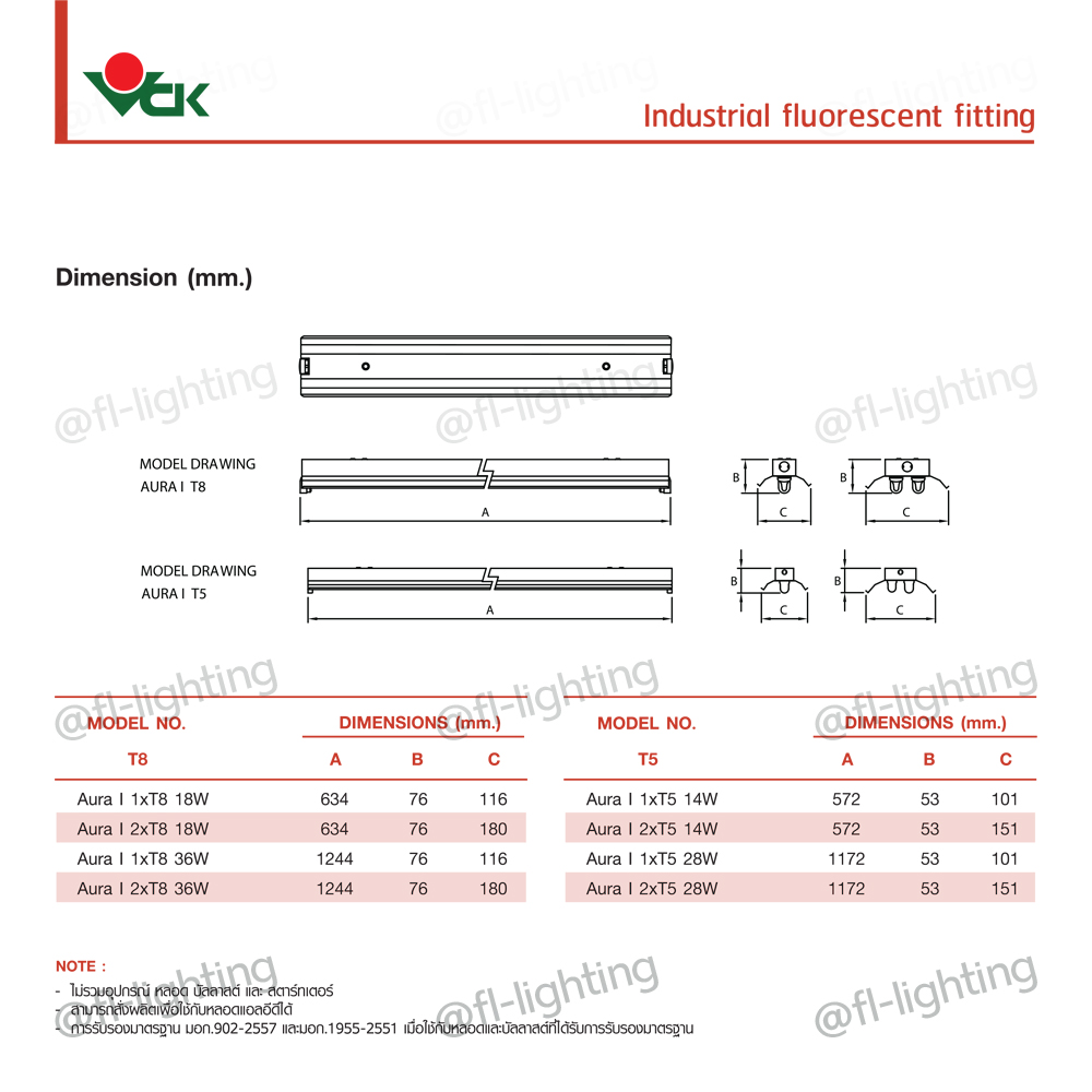 NOTE : - ไม่รวมอุปกรณ์ หลอด บัลลาสต์ และ สตาร์ทเตอร์ - สามารถสั่งผลิตเพื่อใช้กับหลอดแอลอีดีได้ - การรับรองมาตรฐาน มอก.902-2557 และมอก.1955-2551 เมื่อใช้กับหลอดและบัลลาสต์ที่ได้รับการรับรองมาตรฐาน