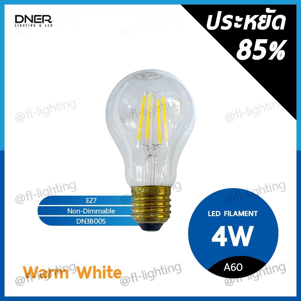 - หลอดไฟ LED Bulb A60 Filament 4W ขั้ว E27 แก้วใส