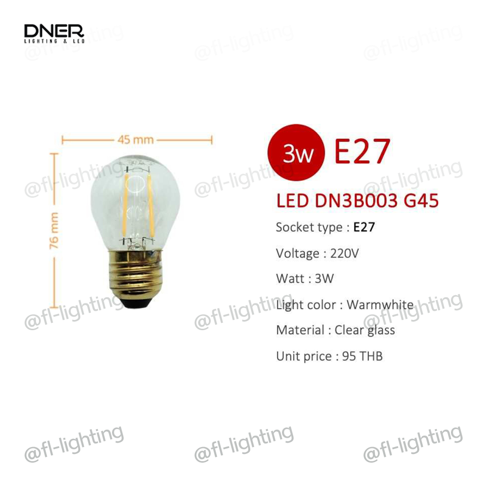 - หลอดไฟ LED Bulb G45 Filament 3W ขั้ว E27 แก้วใส