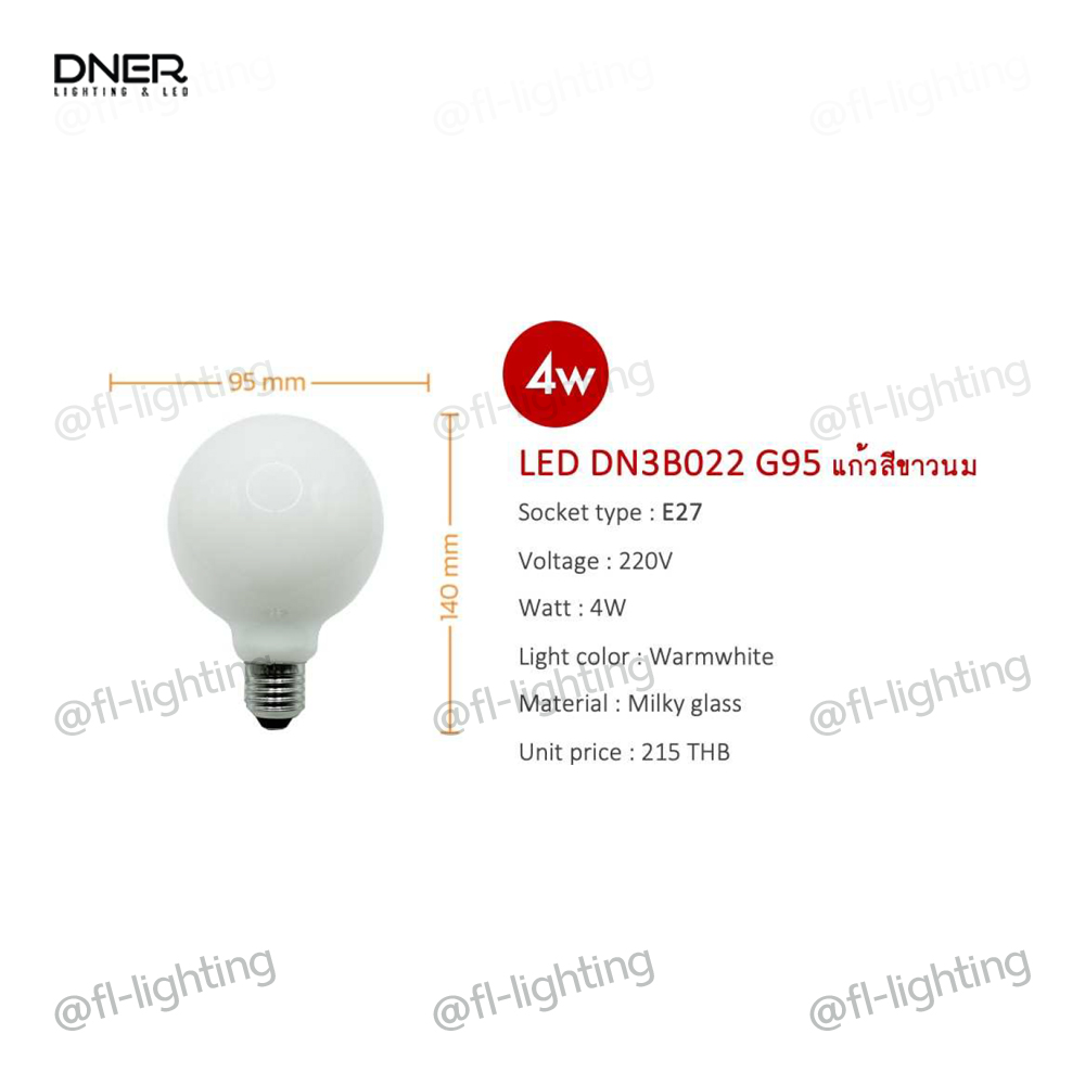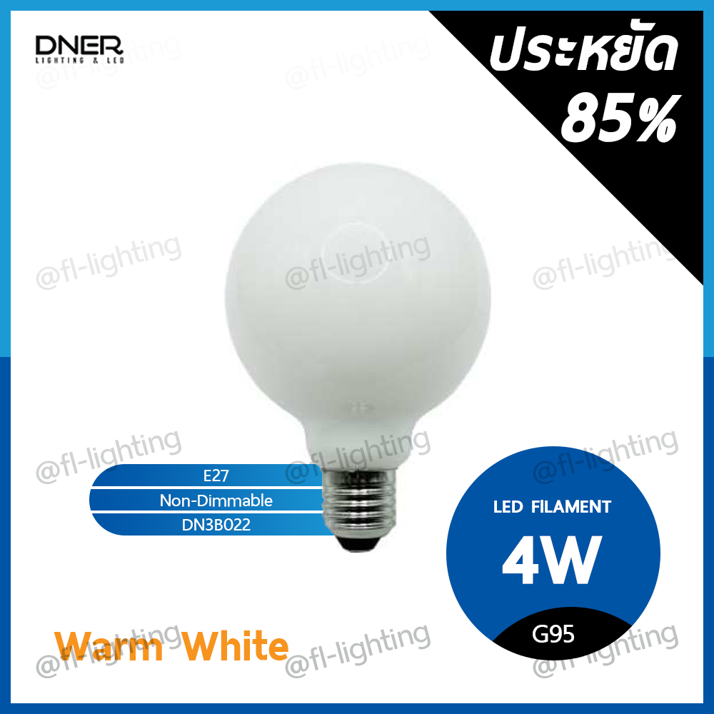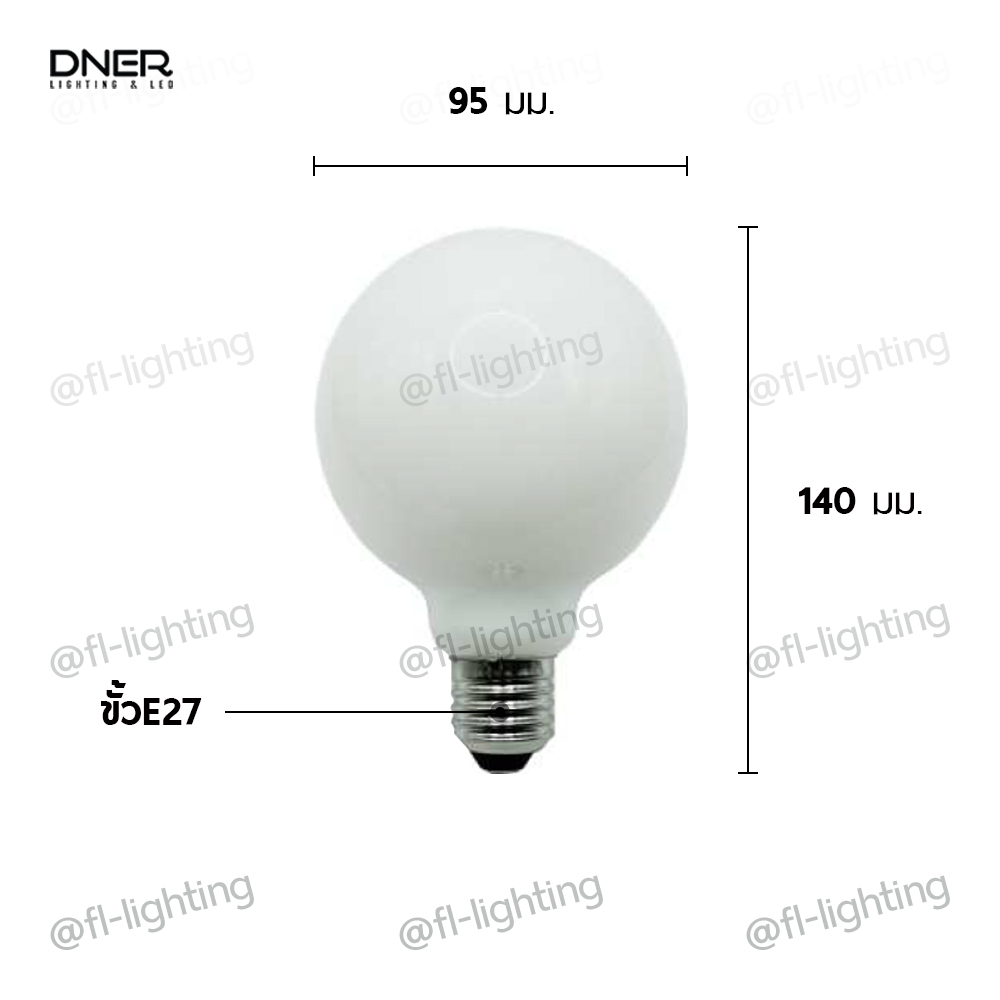 - หลอดไฟ LED Bulb G95 Filament 4W ขั้ว E27 แก้วสีขาวนม