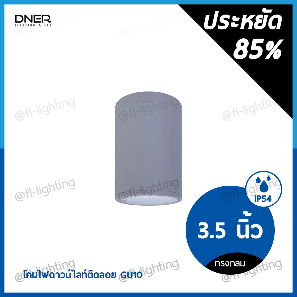 - โคมไฟดาวน์ไลท์ติดลอย ทรงกลม 3.5 นิ้ว กันน้ำ ขั้วGU10 สีเทา