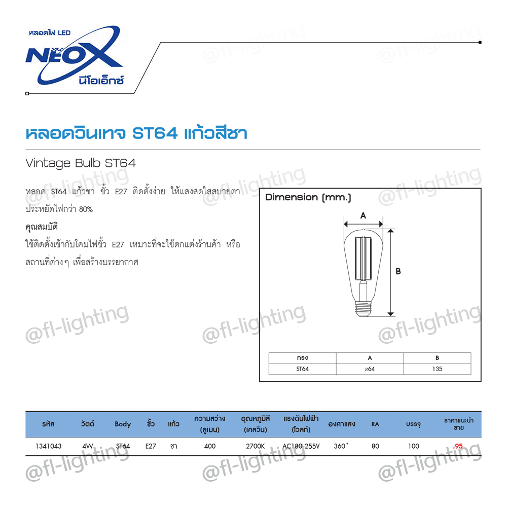 #NeoX #หลอดไฟLED #หลอดไฟแอลอีดี #หลอดไฟโคมไฟ #หลอดไฟดาวน์ไลท์ #หลอดไฟขั้วE27 #LED #WarmWhite #ST64