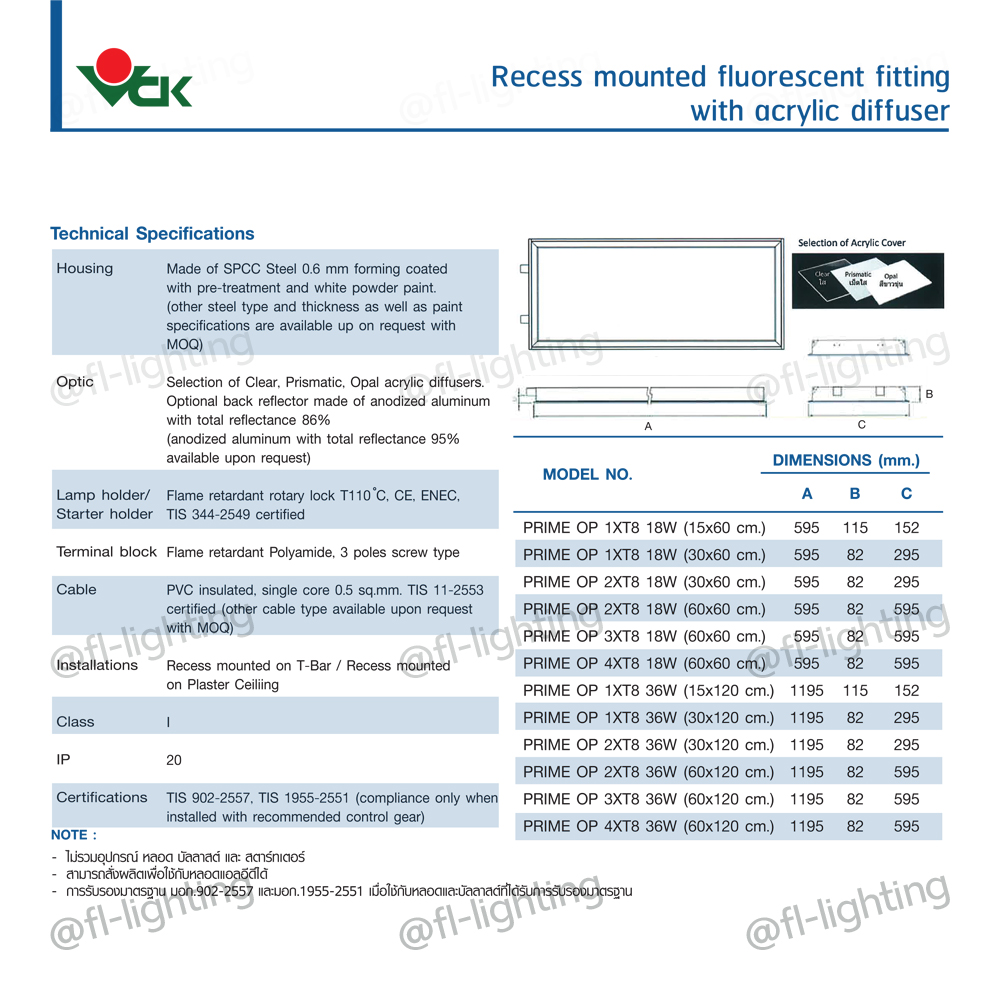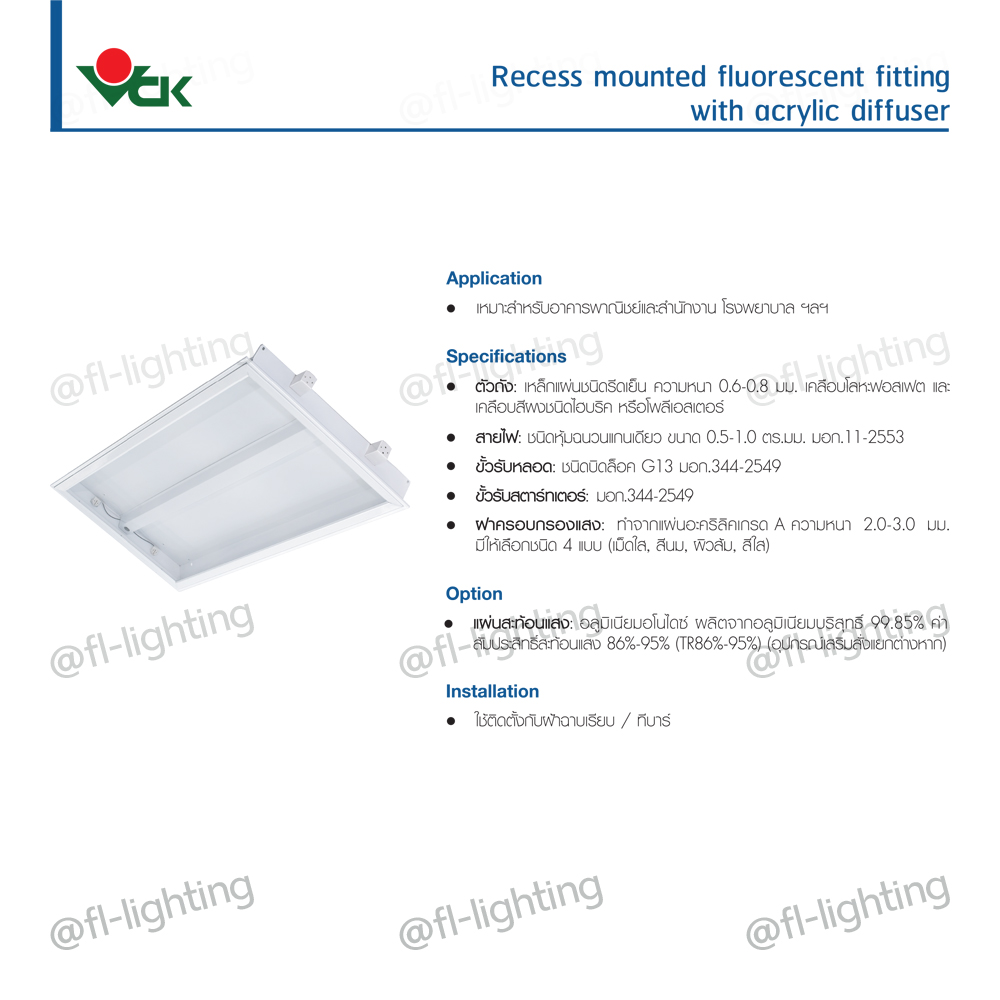 - ฝาครอบกรองแสง : ทำจากแผ่นอะคริลิคเกระ A ความหนา 2.0-3.0 มม. มีให้เลือกชนิด 4 แบบ (เม็ดใส, สีนม, ผิวส้ม, สีใส)
